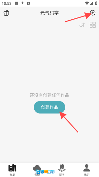 2、打开【作品】页面后,点击右上角的【+】图标或者【创建作品】图标。