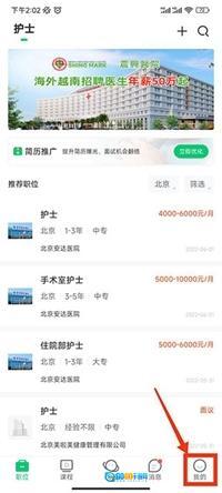 1、进入医疗人才网,在右下角找到我的选项。