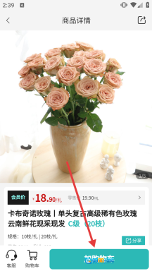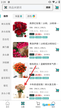 2、在分类页面中,选择【卡布奇诺玫瑰】这一选项,随后进入对应的商品详情页。