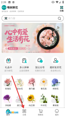 1、在首页点【分类】,进入分类页。