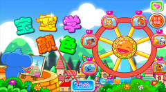 1、进入【宝宝学颜色】的主界面后,点击界面上的【开始】按钮,就能进入功能选择页面,开启学颜色的互动学习环节。