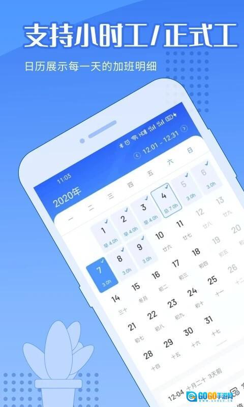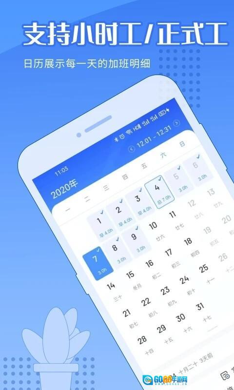 1、在日历上记加班,每月加班记录清清楚楚。