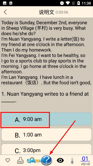 3、进入阅读题目页面后,阅读【Sheep-Village】相关文本内容,依据题目要求选择对应的选项,完成题目的作答。