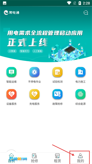 1、在【常电通】首页,点击底部的【我的】选项,即可进入个人中心页面;首页设有智能运维等各类功能的入口。