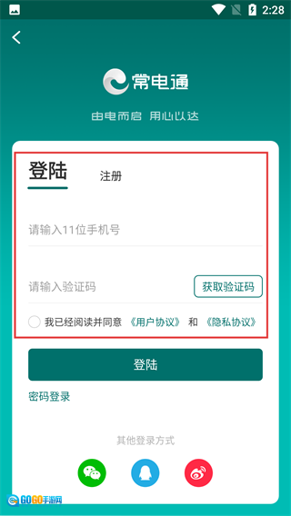 4、还能选用验证码登录的方式,先输入11位手机号,接着点击【获取验证码】,再填写收到的验证码并同意相关协议,就能完成登录操作了。