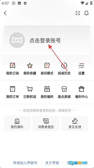 1、打开界面新闻应用,点击右上角的个人图标,就能进入个人中心页面。