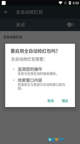 开启自动抢红包服务需进行一些设置操作,点击确定按钮即可完成;
