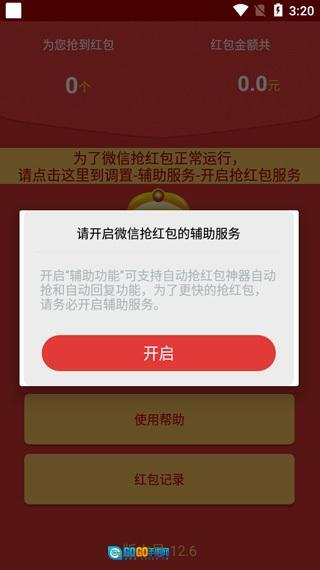 1、在本网站安装全自动抢红包工具,启动该软件后,点击开启微信抢红包的辅助功能。