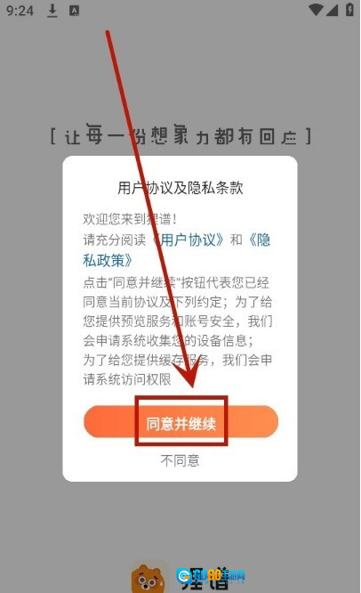1.安装并打开,点击【同意并继续】同意隐私政策。