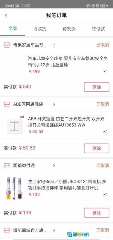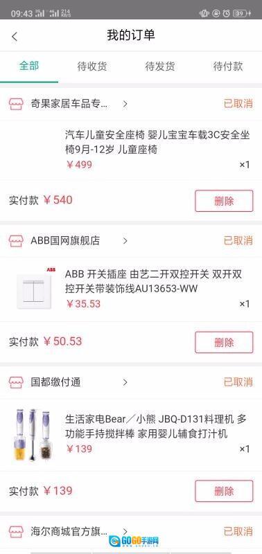 6、查看订单信息,了解订单的状态和实际支付的金额,还能删除订单。