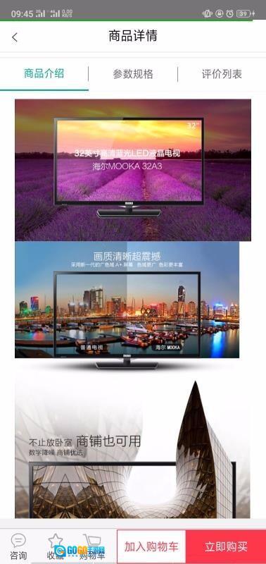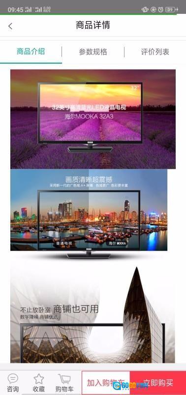 4、浏览商品详情页面时,既能发起在线咨询,也能查看产品的参数规格以及用户评价列表。