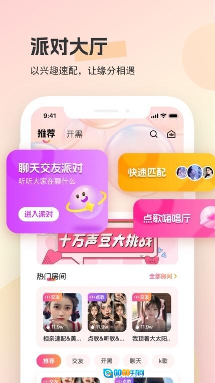 3、配备多样的娱乐互动功能,像试音点唱、连麦K歌之类,助力用户扩大社交范围,度过愉快的时光。