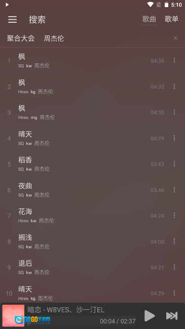 1、支持网易云音乐、QQ音乐、咪咕音乐、酷狗音乐等多个平台的搜索功能,让你不再受歌曲下架的困扰,找歌更加方便高效。
