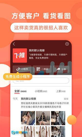 轻松搭建共享相册,只需一键关注就能快速转图,高清、安全且支持存储;还能生成小程序,方便客人浏览款式。