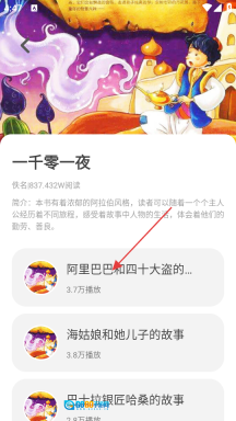 3、在《一千零一夜》的详情页面中,找到并点击《阿里巴巴和四十大盗的故事》这一条目,即可进入该故事的阅读界面。