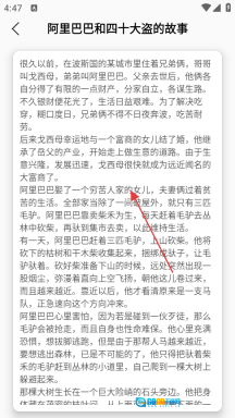 4、进入阅读页面后,就能开始阅读《阿里巴巴和四十大盗的故事》的内容了。