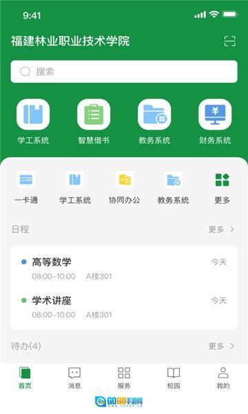 福建林业职业技术学院专为在校师生打造的智慧校园服务软件——福建林职,整合了丰富的功能模块,覆盖学习与生活多方面需求:不仅能在线查询成绩、课程表、校历等学习相关信息,还具备图书馆座位查询、图书借阅等服务功能,为师生的校园生活提供了更多便利。