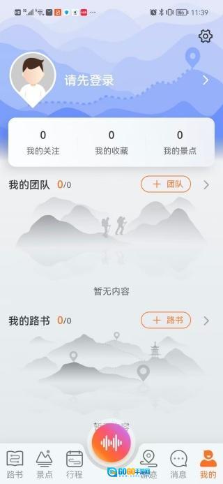 在“我的”页面中,您可以查看我的团队、我的路书、我的关注、我的收藏、我的景点等相关内容。