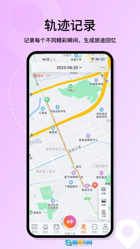 1、游迹记录功能能够自动且精准地记录旅途轨迹,还支持同步留存旅行过程中的心声与感悟,以此保存那些珍贵的回忆。