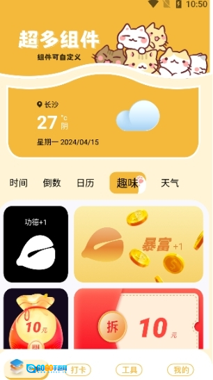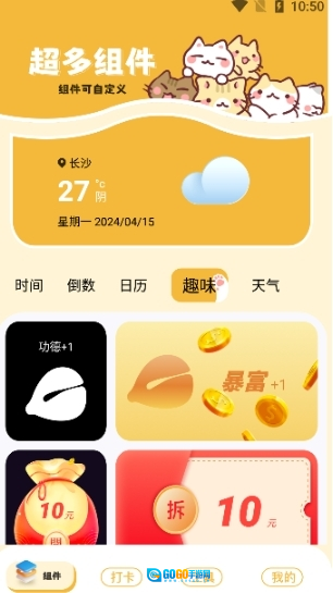 卡通小组件是一款手机桌面美化应用,提供丰富多样的桌面小组件供用户自主选择并添加到桌面;它涵盖日历、倒数日、天气、纪念日等实用工具,用户可根据喜好灵活组合搭配,平台还拥有海量风格迥异的卡通风模板,支持自由定制桌面风格,一键即可打造出独一无二的手机桌面氛围。