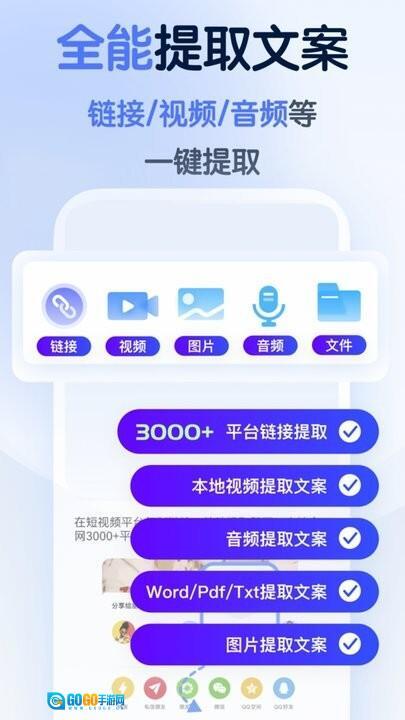 1.可从链接、视频、音频等多种形式中提取文案,覆盖全网热门平台,助力用户迅速获取所需内容。