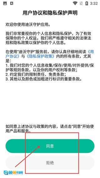 1、在【用户协议和隐私保护声明】界面,点击【同意】按钮,以此接受相关协议并进入后续操作步骤。
