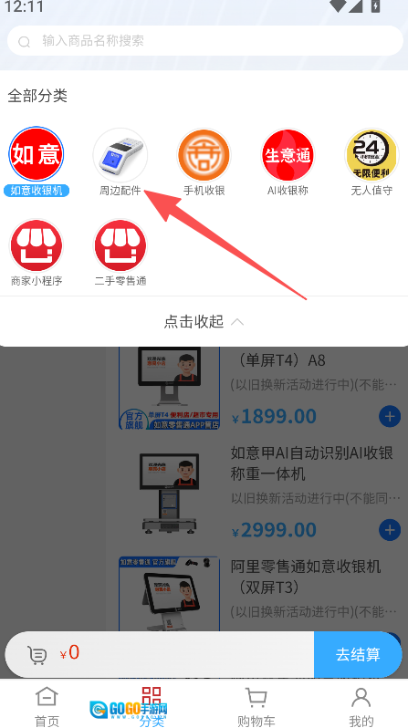 2、支持分类筛选功能,点击相应分类,即可查看该类别下所有与收银相关的商品。