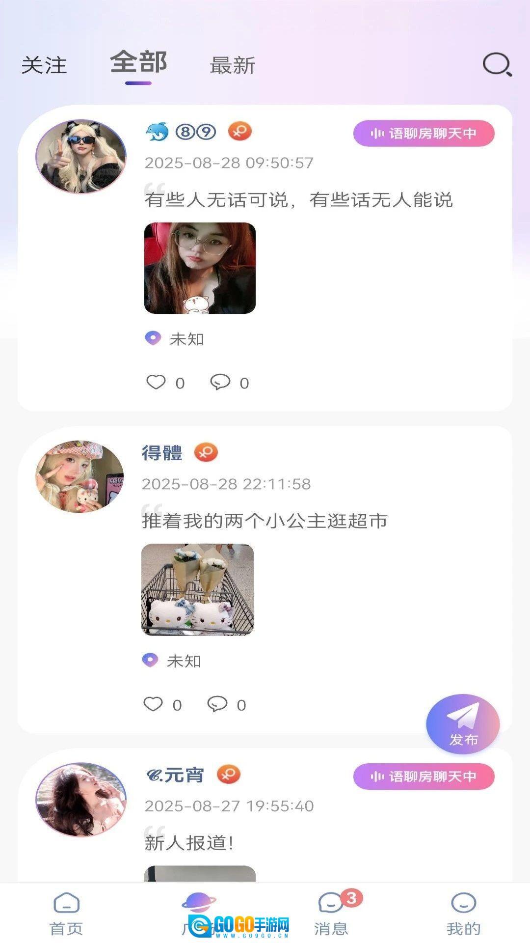 3、动态广场可供大家分享生活点滴、发起兴趣话题,在动态流里用户能轻松找到共鸣,让彼此的距离更近。