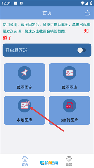 1、打开截图工具后,在首页找到并点击“本地图库”选项,即可进入本地图片的选择界面。