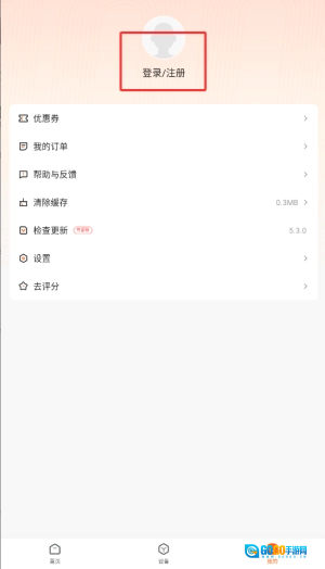 2、在账户管理区域找到“登录/注册”按钮并点击,进入账号验证页面。
