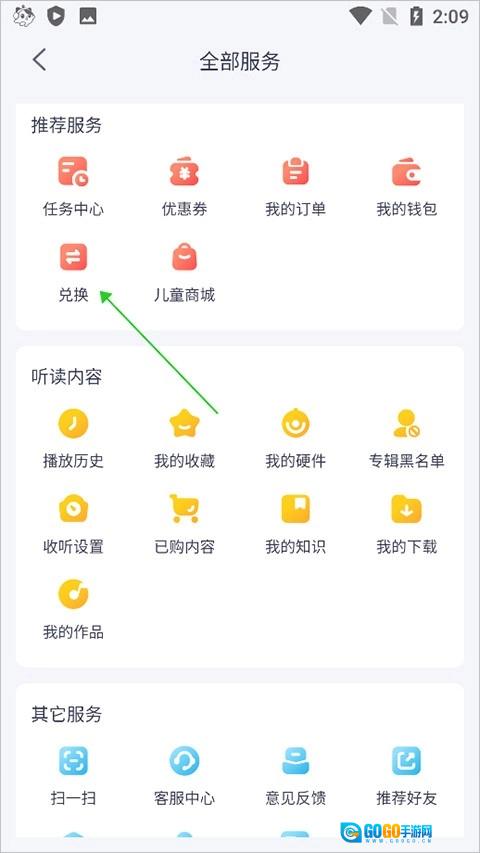 第二步:在新打开的页面里,找到并点击【兑换】按钮,其具体位置可参照图示。
