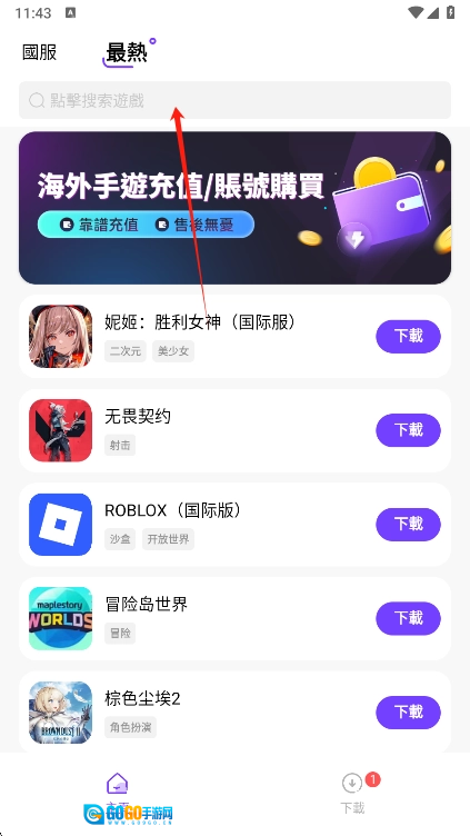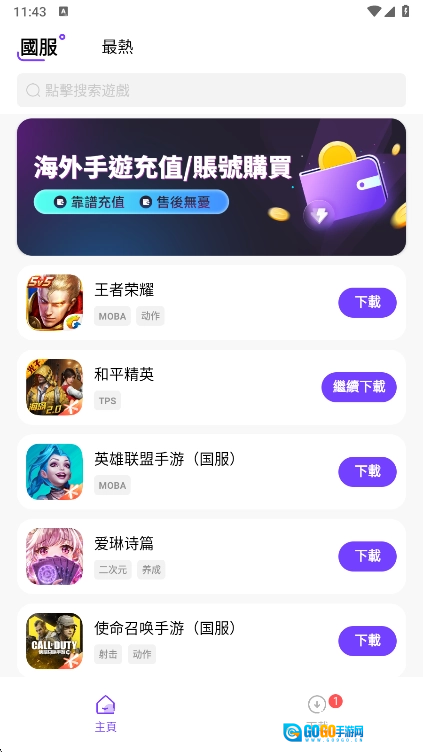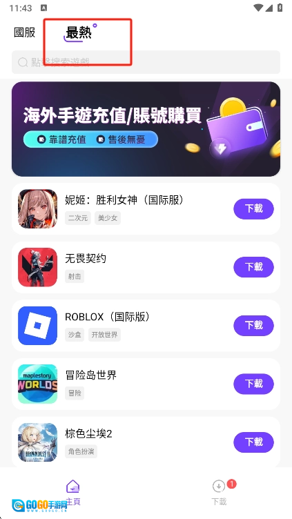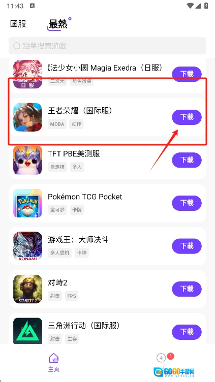 2、进入软件的主页界面后,你会看到这里有海量热门的国服内容,具体情况如图所示。