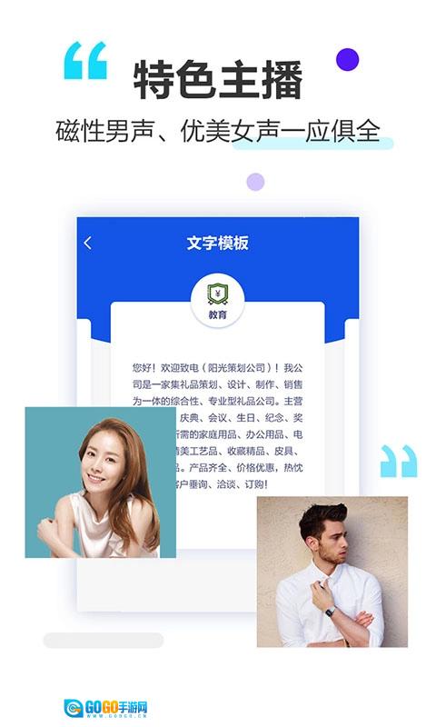2、内容编辑完成后,点击声音模板选项,即可试听文字的转换效果。