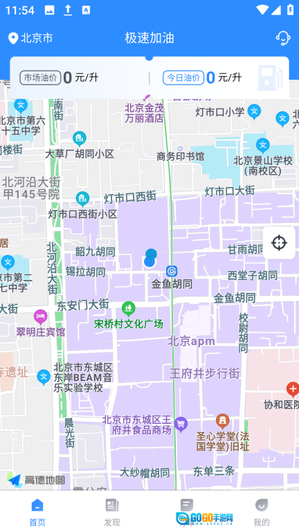 2、查看周边加油站的分布情况与实时油价,选定意向油站后点击“一键加油”,抵达油站后通过扫码或输入油枪编号完成加油支付。