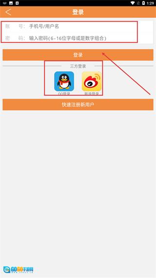 2、进入登录页面后,您可以在账号密码输入框中填写相关信息并点击【登录】按钮,也可以选择通过【QQ】或【微博】的第三方登录方式完成登录操作。