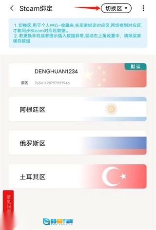 4、最后点击右上角的切换区,选择你想切换的国家或地区就可以了!