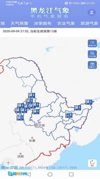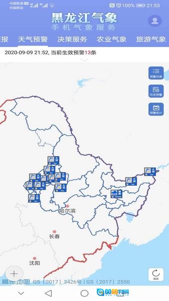 1、能够查看气象地图,知晓黑龙江各地市、县的天气情况;