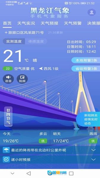 4、直观呈现黑龙江省的具体天气实况、预报及预警等信息