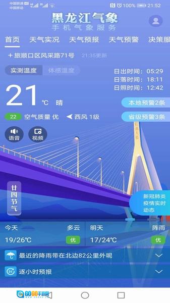 这是一款专门为黑龙江用户设计的天气查询辅助工具,依托智能科技服务端,为用户提供实况监测、卫星云图、雷达资料、