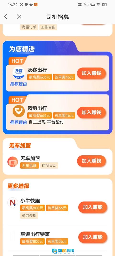 3、选择一个你想要加入的司机平台,点击进入;