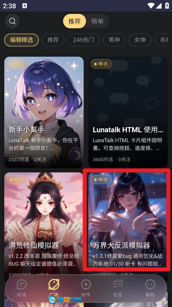 3、能够浏览其他用户创建的AI角色并和它们互动,还可以分享自己的创作,认识更多有意思的虚拟伙伴。