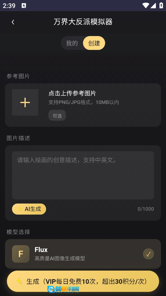 5、如图所示,在当前页面上传参考图标,填写图片描述信息,完成后点击“生成”按钮即可。