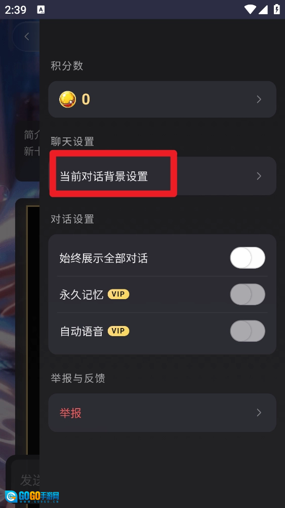 3、然后在聊天设置板块点击"当前对话背景设置"。