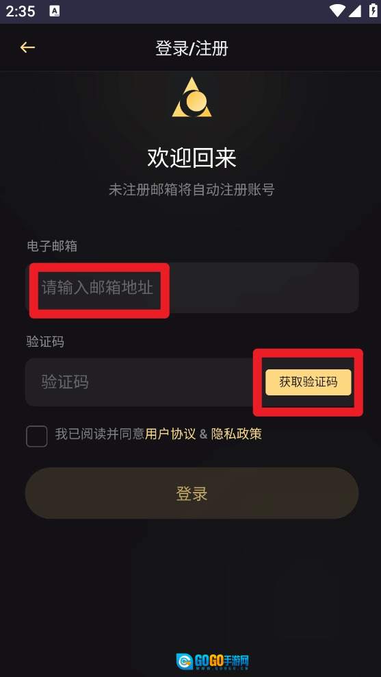 4、完成操作后输入验证码就能顺利登录,若使用未注册过的邮箱,系统会自动完成账号注册。