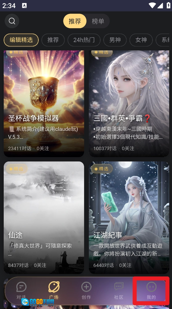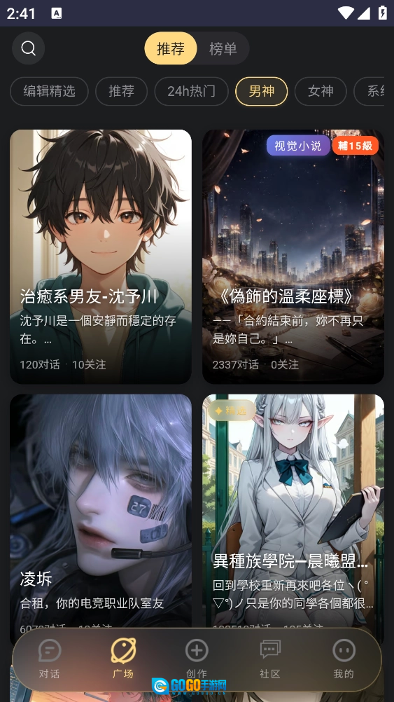 1、打开软件,在广场板块选择一个喜欢的角色。
