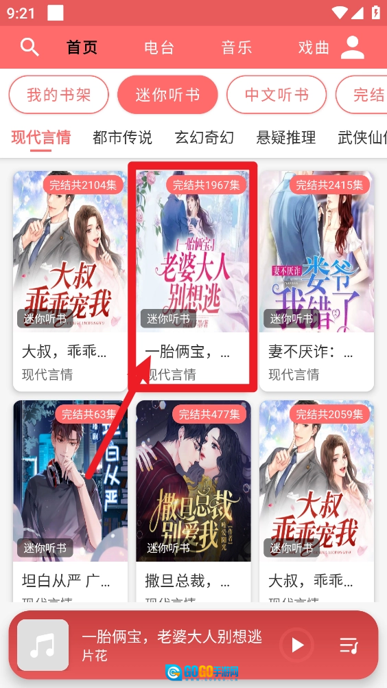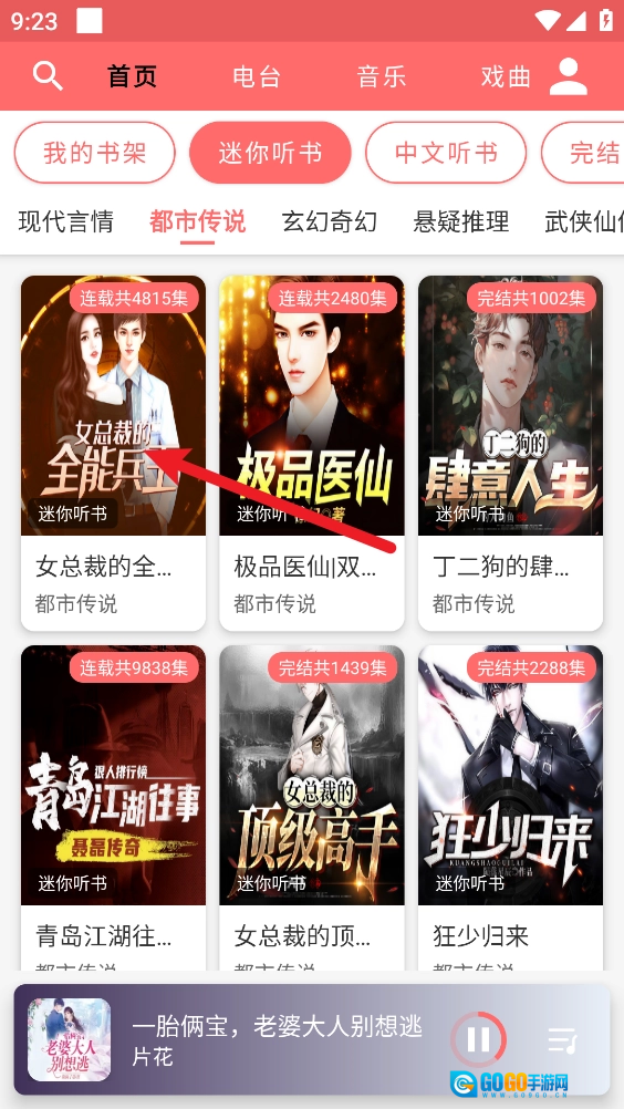 2、进入主页,选择并打开喜欢定时的听书资源。