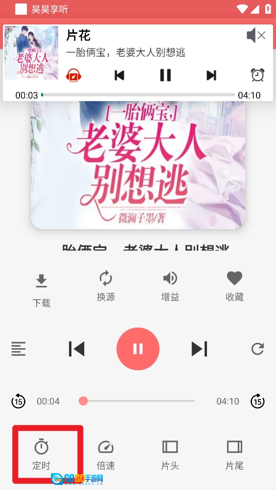 3、如图所示,在听书界面点击左下角"定时"。