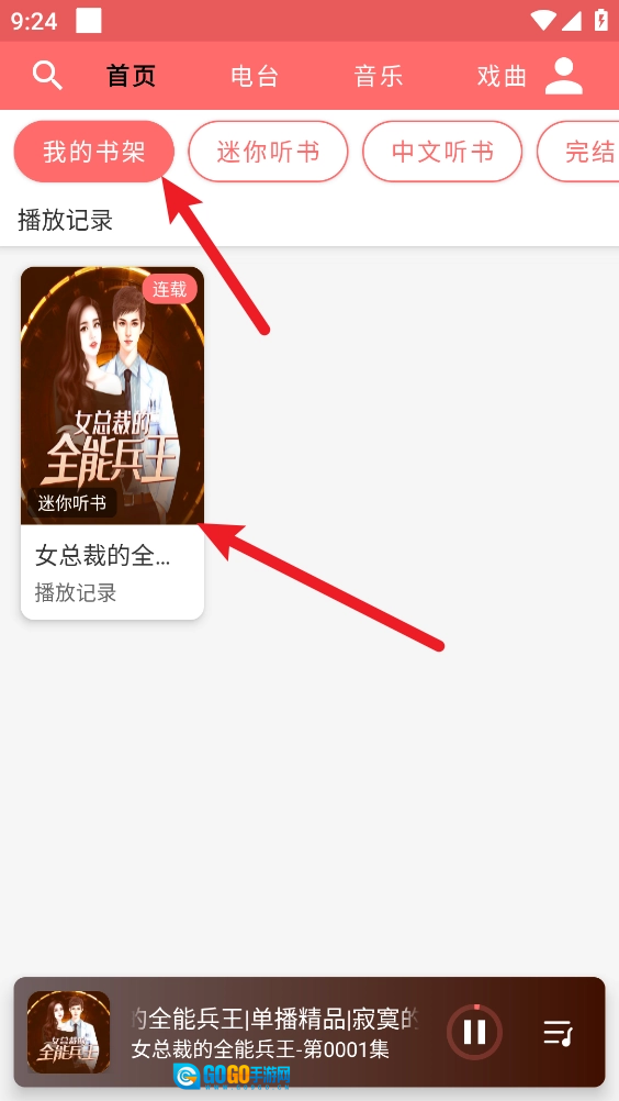 3、最后返回首页,进入“我的书架”,就能查看添加的小说资源了。