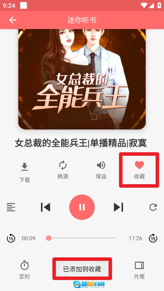 2、进入听书界面点击"收藏"图标即可。