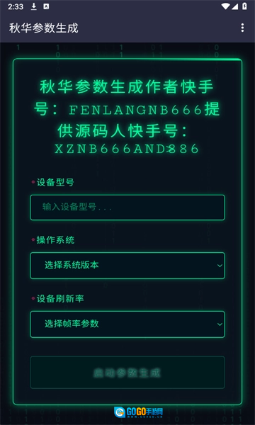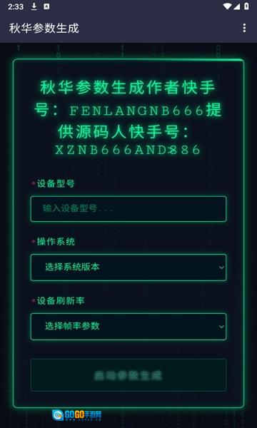 1、用户在本站启用秋华参数生成器,并填写设备型号相关信息。